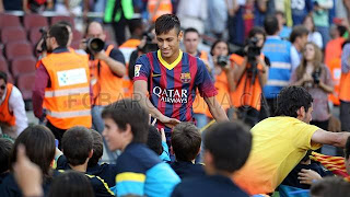 Before Neymar returned to Brazil, the newest FC Barcelona player sat down with Barça TV and www.fcbarcelona.com. The Brazilian forward talked about his presentation on Monday and his excitement to don the Blaugrana strip and to play alongside Messi. Did you imagine that nearly 60,000 people would attend your presentation as an FC Barcelona player? “No, it was much better than I expected. It was truly emotional for me. It made me very, very, very happy.” I suppose these last couple of days have been exciting for you. First, why did you leave Santos ... Did you feel as though you needed a new challenge? “It was the moment to leave. It was the moment to find new things. Being a Barça player means that I’ve realised my dream.” A couple of days ago you said that Dani Alves encouraged you to come to Barcelona. What did Dani tell you exactly? “Dani has always had good things to say about Barcelona. He speaks well of the city, but especially the group, the team. This team is marvelous. Great players play here, they are good friends, and that’s important for a team. Dani told me that this is what I’d find in Barcelona. He encouraged me to come. Adriano also spoke to me about Barça, and he also encouraged me. And now I’m here.” On Monday you met with Adriano. What did he tell you? “He welcomed me to the Club and he wished me luck. Adriano is a great person. We have a fantastic relationship, and now I get to be in the same team as my friend.” During the press conference you talked about Ronaldinho. You said your first memory of Barça was when he played for the team. What kind of things do you remember about Ronnie’s time at Barça? “Well, I remember his plays, his dribbles. I remember him winning every title at the Camp Nou.” Can we compare you to him, in terms of how you both play? For the fans who haven’t seen you play, is it fair to say that your style is similar to Ronaldinho’s? “No, no one can compare to Ronaldinho. He made history at Barça, he made history with Brazil, and he’s still making history. In my case, I’m starting to make history, and I hope to leave my mark at Barça.” Barça and Santos faced off in the final of the Club World Cup in 2011. You said that you learned how to play football on that day. What impressed you about Barça in that final? “What impressed me the most was the simplicity of Barça’s football. The fact that it was directed towards achieving and objective and at the same time it was very adaptable. The simplicity with which Barça were able to impose themselves in each game was really sensational. Barça left everyone with open mouths, not just Barça fans, but the press and the Santos players, too.” You’ve talked a lot about Messi these last couple of days, you’ve said how excited you are to play with him. What about Messi’s style of play do you like the most? “ Messi is a hero for me. He always has been, and he will continue to be. I have the opportunity to play at his side. I’m sure it will be a marvelous experience. I’m very happy to help him continue being happy.” You also talked about Xavi and Iniesta. Do you like their play style? “Yes, a lot. Both Xavi and Iniesta are two great players who I have always admired. I’m a fan of both of them.” What will the fans see when Neymar plays at the Camp Nou? “They will see a happy Neymar, daring and eager to win each and every game.”